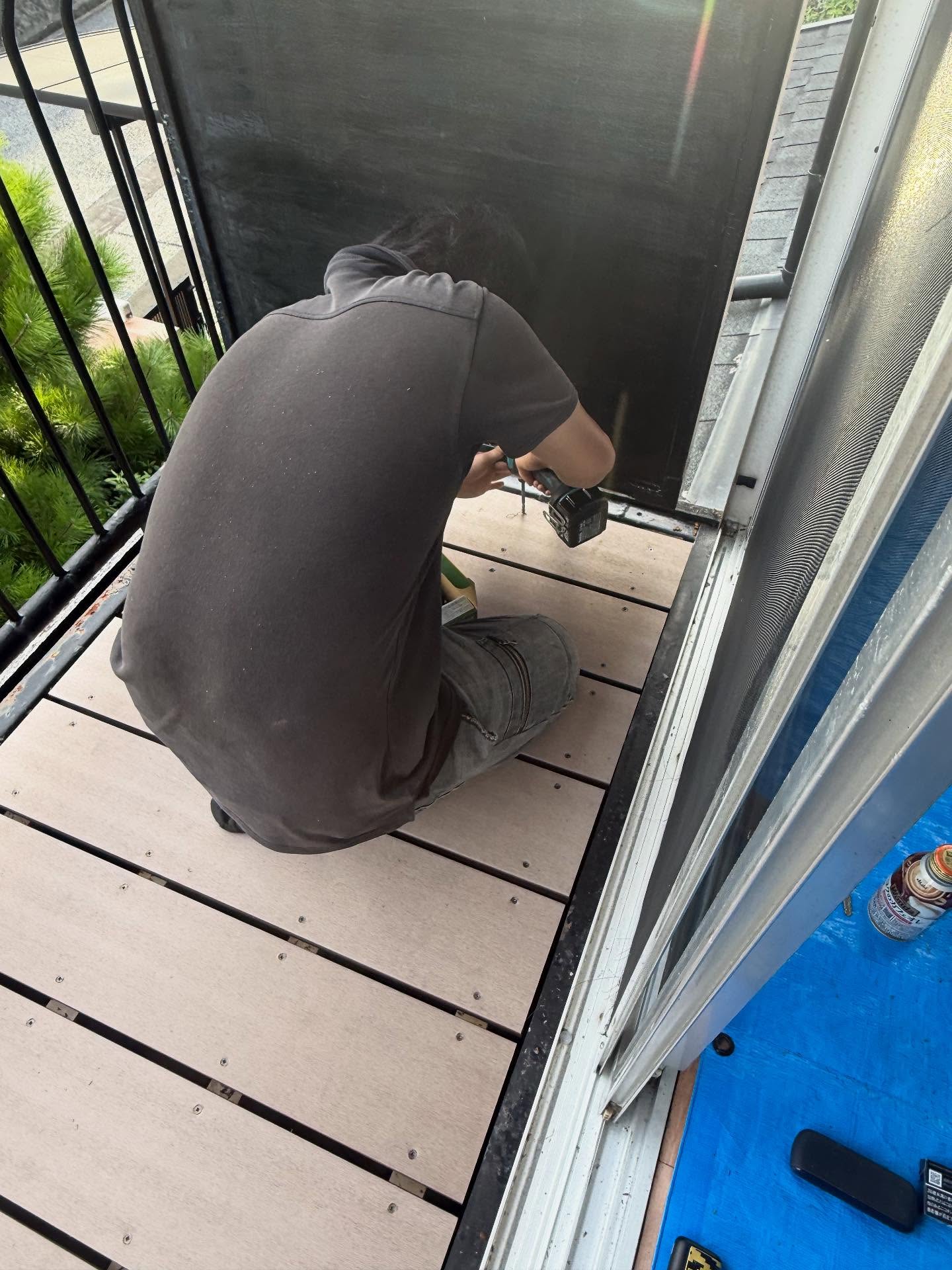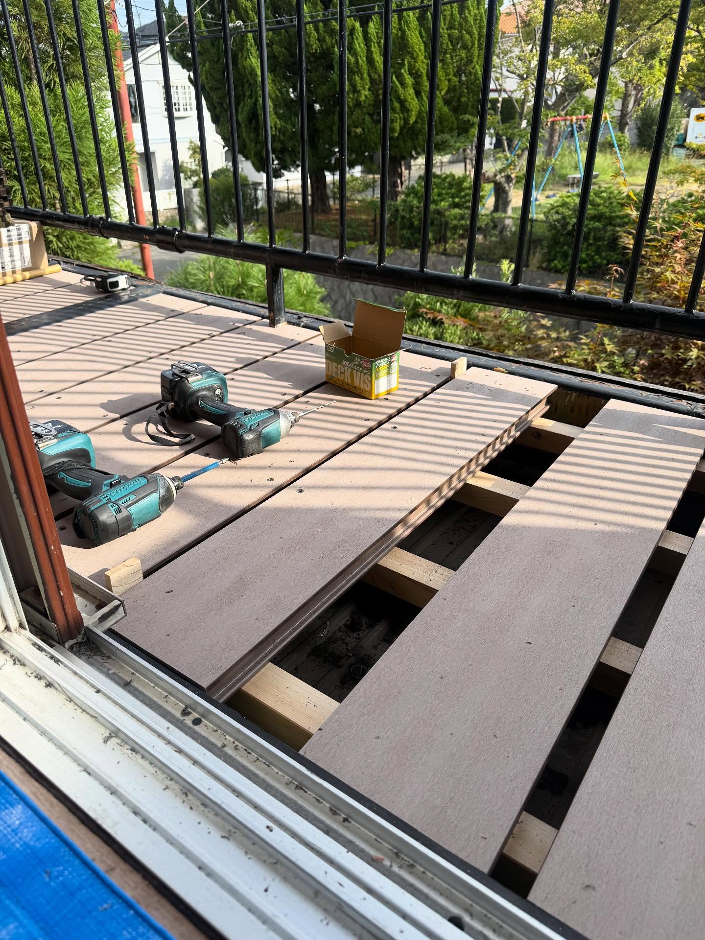 本日は宝塚まで、ベランダのウッドデッキ(木製→樹脂製)交換に♪ ビスが+でも-でもない…◻︎でした笑 そんなビット持ってないやん! って急遽コーナンに買いに… 帰ってビス箱開けてみたら、何と付いてました笑 何やかんやで1日で無事作業終了です♪♪ 帰って、家族で揚げたこ焼きが食べれる居酒屋へ。 息子よ休日出勤お疲れ様。 ベランダのウッドデッキ(木製→樹脂製)交換 施工事例一覧に戻る