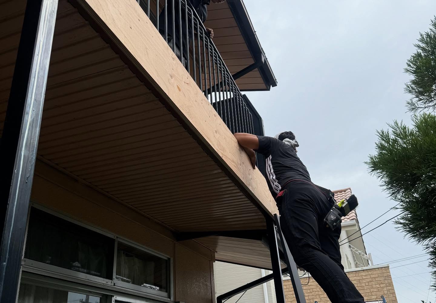 本日は兵庫県宝塚市まで♪ ベランダのハチマキの取替え工事! 足場がなかったら…と断られ続けた現場。 やっと一人手伝ってくれる仲間がいた。 私のパーソナルトレーナー「ウッズ」 ペンキ屋さんで板金経験有りと! コーキングまでしてくれて、めっちゃ助かりました笑 やっぱ、いい腕してるわ。 安価で人思いなので、ペンキの仕事があれば LEAD TRACK PAINT永島君まで♪ 休日出勤してくれた、ソライもありがとう♪ おかげさまでCF綺麗も綺麗になりました笑 畳・襖・障子も納め全工程完了しました。 皆んなで遅めの昼食を食べ解散です笑 ベランダのハチマキの取替え工事 施工事例一覧に戻る
