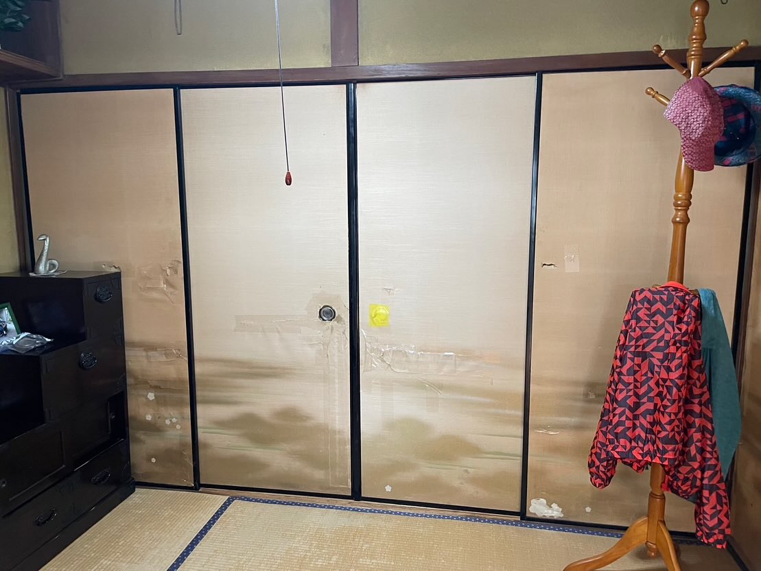 リスクのある4枚組の襖! 1枚失敗したら、4枚買いなおし。 失敗できない貼り替え! 襖の幅も細いので、柄切り落としの作業も慎重に。 高級織物襖紙あかつき4枚柄でした♪ 仕上がり最高に綺麗! 我ながら上出来です笑 神経擦り減ってクタクタになりました。 4枚組の襖 施工事例一覧に戻る